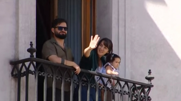Pasadas las 11:00 horas de esta jornada, y mientras los adherentes se manifestaban afuera del Palacio, el Mandatario salió por el balcón -acompañado de su pareja, Paula Carrasco, y su hija, Violeta Boric-, y los saludó.