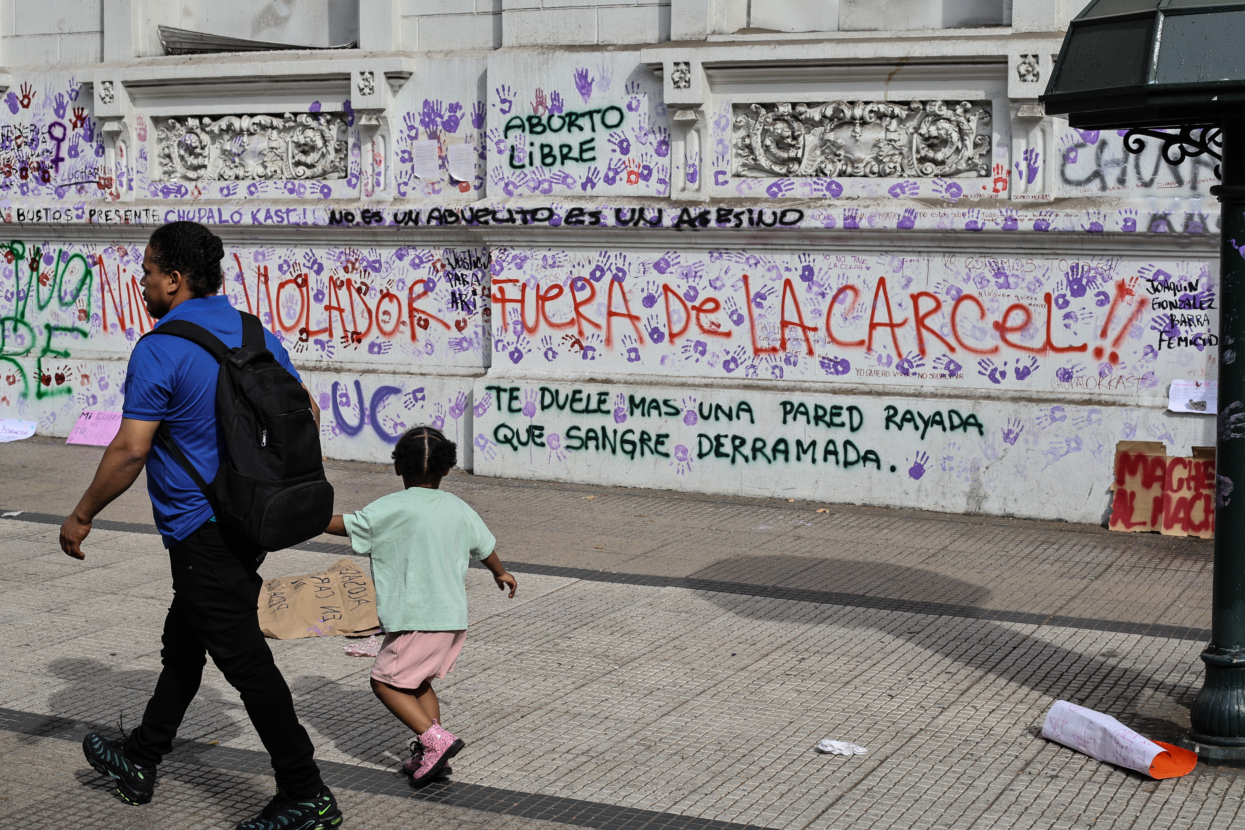 Sin embargo, también existieron hechos aislados que empañaron la jornada, por ejemplo, un grupo de encapuchados realizaron rayados en el frontis de la Universidad de Chile, en la intersección de Arturo Prat con la Alameda.