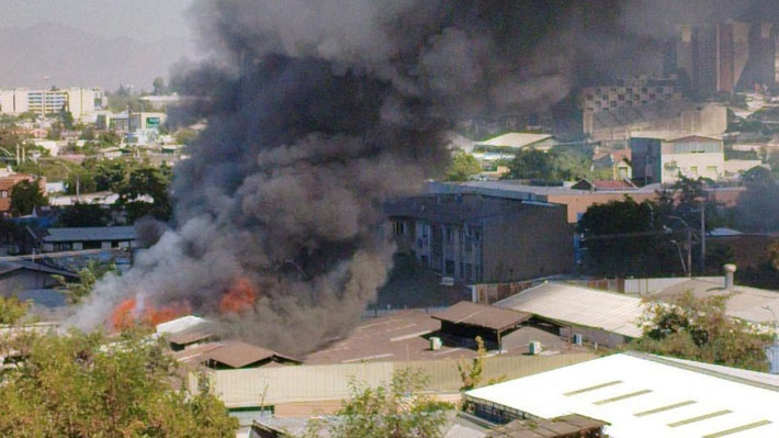 Casi al mediodía de este martes un incendio en una fábrica abandonada en Santiago Centro mantiene a equipos de Bomberos trabajando para contener las llamas.