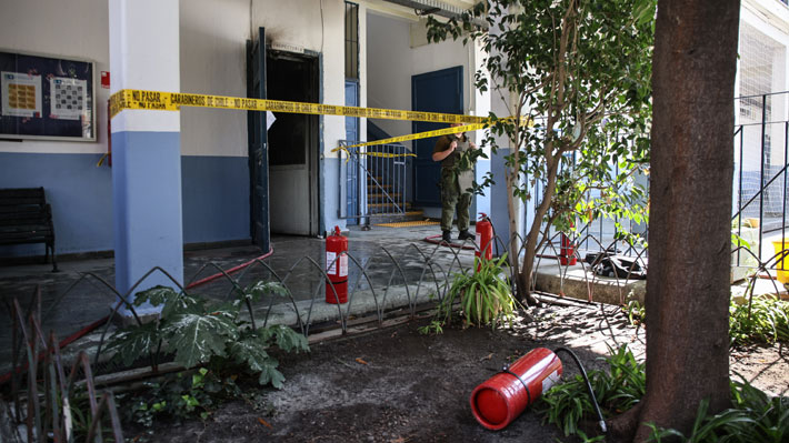 En este caso, fueron tres encapuchados que estaban adentro de nuestro colegio, fueron al baño, se encapucharon, tenían unos bidones azules con bencina", comento el jefe comunal.
