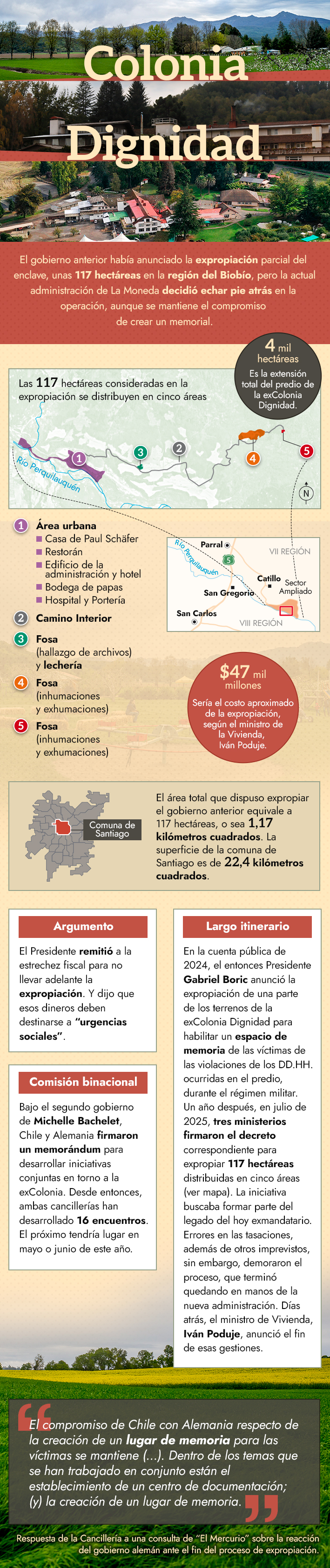 Colonia Dignidad: El mapa de la zona que sería expropiada y el alto costo que el gobierno decidió no afrontar