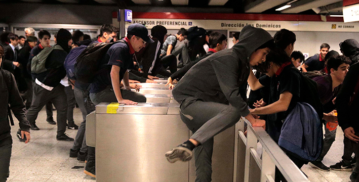 En los últimos días, ese protagonismo volvió a hacerse visible con la reaparición de evasiones en el metro, manifestaciones callejeras y acciones coordinadas por escolares, junto a movimientos universitarios, que reflejaron un ciclo de reactivación que recuerda momentos previos a crisis mayores.