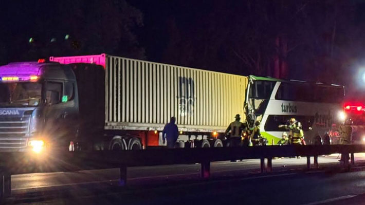 De acuerdo con la información proporcionada, se trató de un bus -de la empresa Turbus- que colisionó con la parte trasera de un camión que transportaba un contenedor. De las 40 personas que iban en el vehículo comercial, al menos 16 salieron lesionadas, seis de mediana gravedad y tres con heridas aún más graves, pero fuera de riesgo vital.