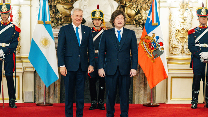 Cerca de las 9:15 (hora Chile), el Presidente José Antonio Kast llegó al palacio de gobierno agentino, la Casa Rosada, donde fue recibido por su par de Argentina, Javier Milei.