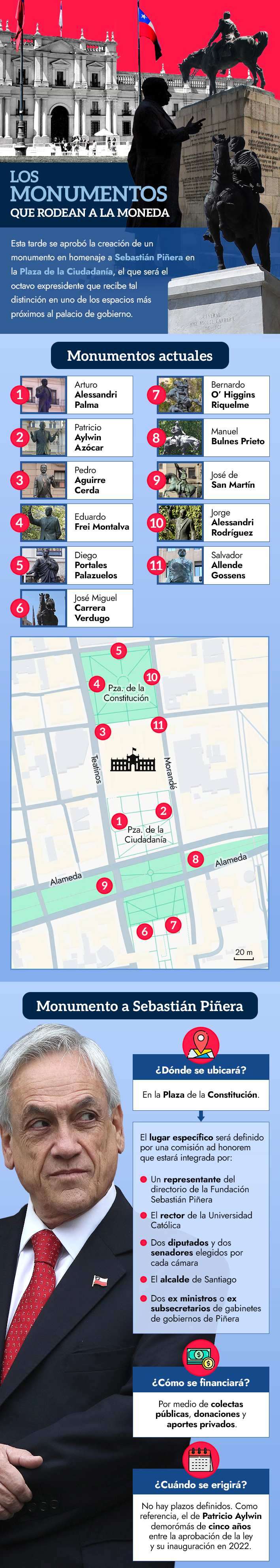 El mapa de los monumentos que rodean el Palacio de La Moneda a los que se sumará el de Sebastián Piñera