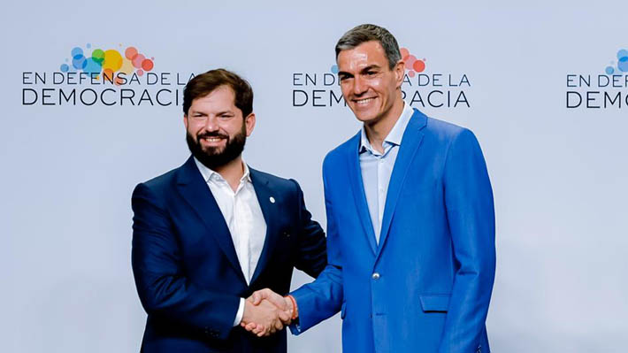El ex Presidente Gabriel Boric junto al mandatario de España, Pedro Sánchez.