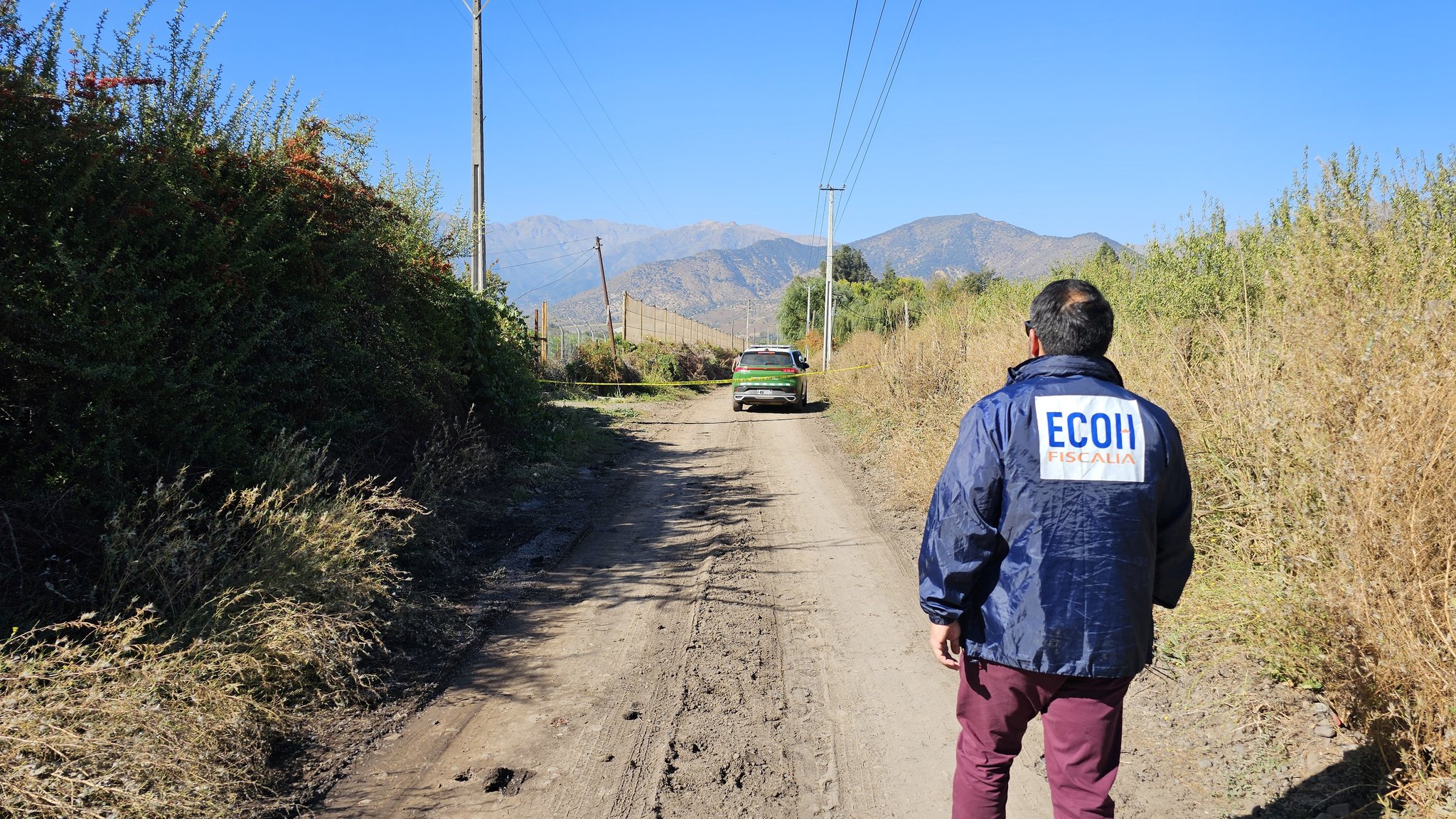 El Ministerio Público indicó que el caso fue denunciado por un vecino que transitaba por ese camino rural: "Fiscalía ECOH junto a Carabineros se trasladó a Paine porque un vecino de un sector rural encontró, junto a un camino, el cuerpo de un hombre envuelto en una frazada con señales de violencia".