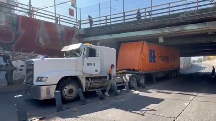 "Pasadas las 11:30 horas, un conductor de 63 años, mientras conducía el camión en cuestión superó la altura autorizada para pasar por esta vía, quedando trabado en ella. A raíz de lo cual, dispusimos desvíos de tránsito por la Avenida Departamental y estamos trabajando para poder solucionar esta problemática", dijo el comandante de Carabineros, Erich Anfossy.