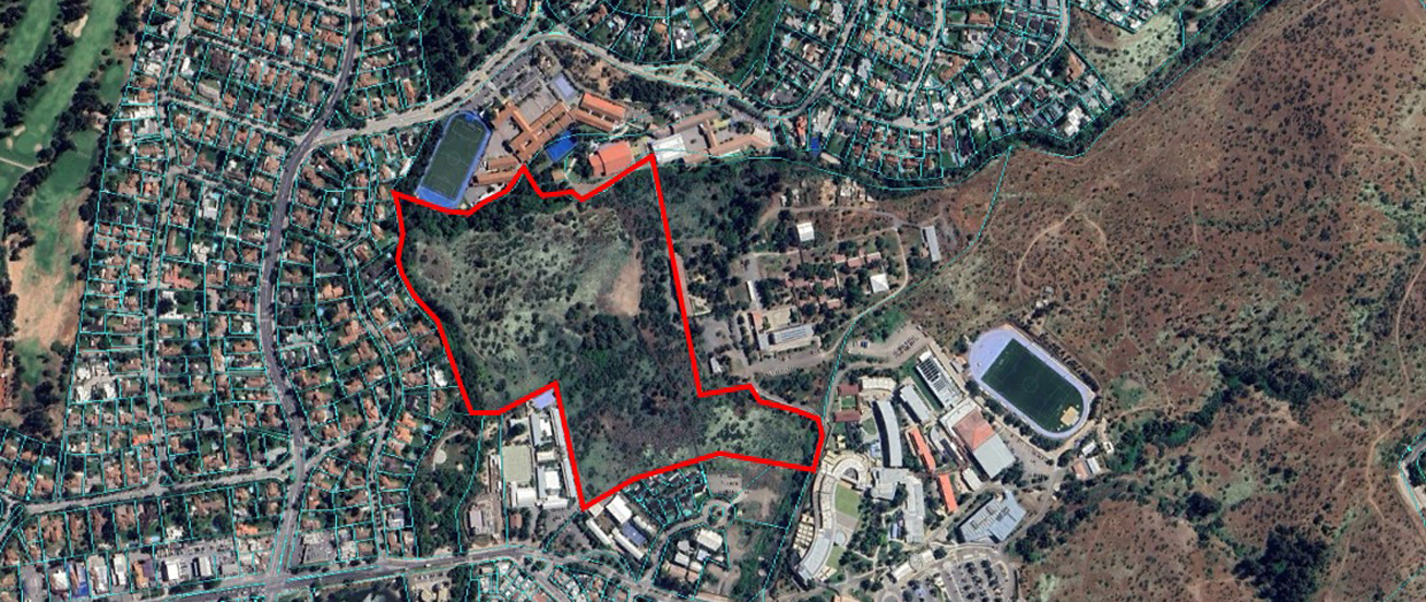 El proyecto se emplaza en un terreno ubicado entre medio de los colegios privados Nido de Águilas y Mayflower, en el eje de Camino El Rodeo, una zona de carácter residencial y educacional en el sector oriente de Santiago, donde la falta de conectividad directa había impedido avanzar en la materialización del conjunto habitacional.