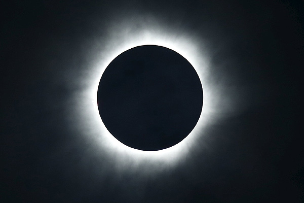 La mayoría de los eclipses son parciales, pero cuando la Luna está suficientemente cerca de la Tierra, el Sol es eclipsado completamente por la sombra de la Luna y sólo es visible un débil anillo de rayos conocido como corona.