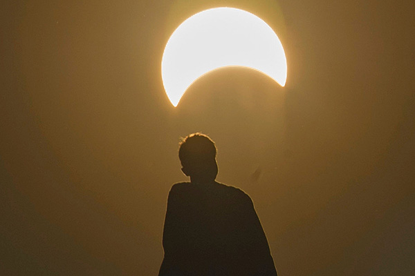 El eclipse completo, que inicia cuando la primera mancha de oscuridad que aparece en la orilla del sol, duró aproximadamente tres horas.