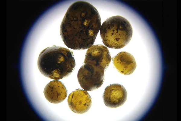 Esos restos, denominados "esferulitas", tienen parte del material de la plataforma continental de lo que hoy es la Península de Yucatán que se fundieron con fragmentos del meteorito. Tienen dos centímetros de espesor y aspecto similar al de unas bolitas de vidrio.