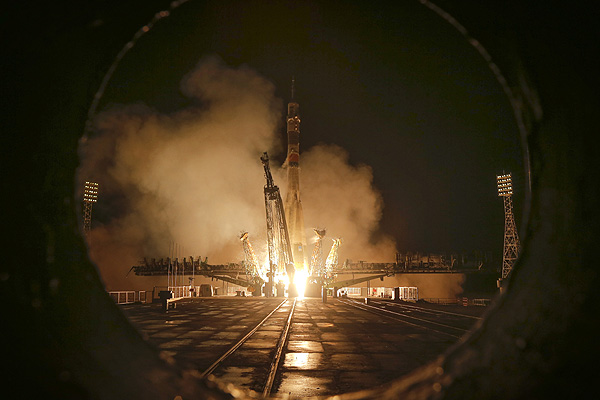 El cohete ruso Soyuz despegó desde la base espacial rusa de Baikonur en Kazajistán a las 21:26 GMT de este viernes (tres menos en Chile), y orbitó cuatro veces la Tierra en una travesía de unas seis horas, de acuerdo a la NASA.