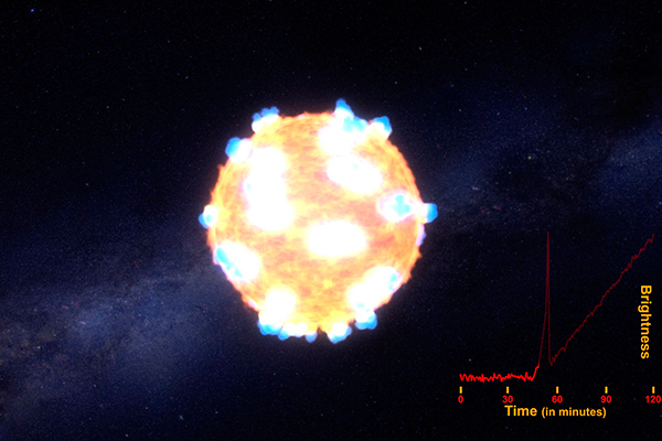 Los científicos pudieron observar que la onda de choque de la supernova aparece como un pico en la luz emitida por la explosión en los primeros días.