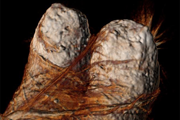En la foto, la imagen del escaneado de los pies de la momia de Ramsés III.