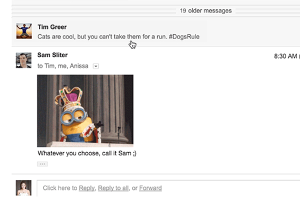 en su blog oficial, Gmail estrenó la función "Mic Drop", que le agrega a un correo un GIF de un minion (los personajes amarillos de "Mi Villano Favorito") botando un micrófono, para indicar que la conversación termina ahí.