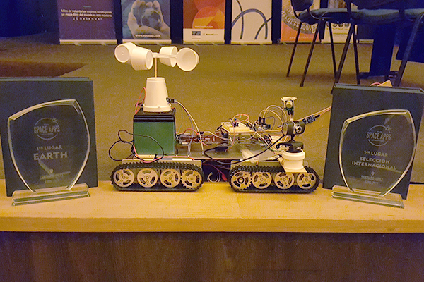 Esta sonda robótica, compuesta de diversos sensores de bajo costo y orugas que le permiten desplazarse por una superficie firme, es capaz de recolectar e interpretar información sobre la composición de diversos tipos de suelos, así como la detección de gases y análisis de agua.