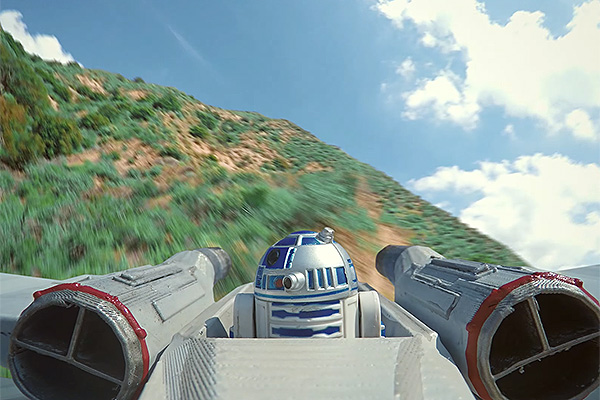El clip fue producido junto a Rotor Riot, un equipo de pilotos profesionales de drones, que se encargaron de las piruetas del X Wing y los Tie Fighters imperiales que lo persiguen, en un escenario que incluye piruetas y vuelos entre los pilares de un puente en altura.