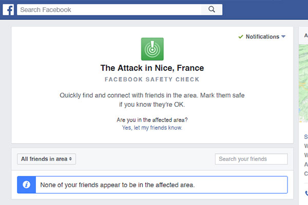 SANTIAGO.- La red social Facebook habilitó durante esta tarde la herramienta "Safety Check" luego del ataque ocurrido en Niza, Francia durante las celebraciones del Día de la Bastilla.