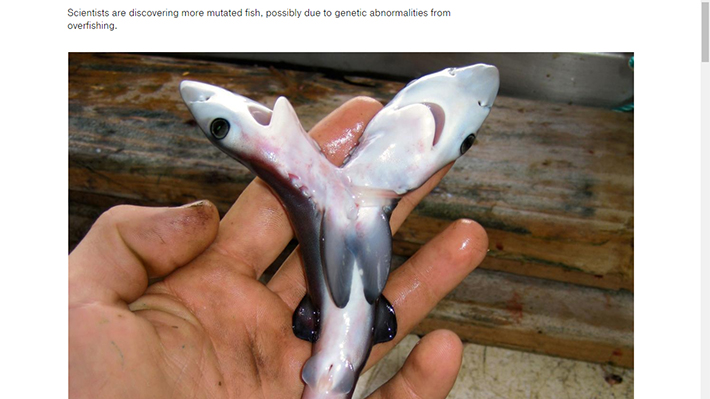 National Geographic, el nuevo descubrimiento se suma a otros tiburones de dos cabezas encontrados en 2008, 2011 y 2013 en ejemplares de tiburones azules, todos fetos o embriones. La publicación indica que esta especie es la que más produce este tipo de deformaciones, porque también lleva una gran cantidad de crías en su interior: hasta 50 al mismo tiempo.
