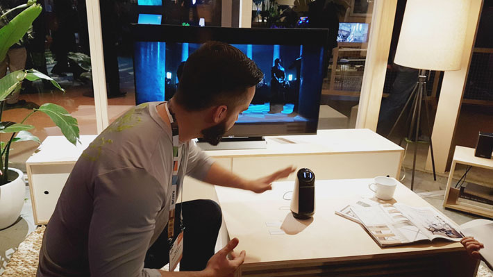 Sony fue otro de los gigantes que le hizo un gran guiño a los robots. Xperia Agent fue el encargado de atraer la atención de los asistentes. Con este agente se podrá administrar y ser asistidos respecto a nuestros dispositivos de entretenimiento en el hogar, ya sea controlando los niveles de luz de la pieza, las funciones del televisor y parlantes, por mencionar algunas funciones.