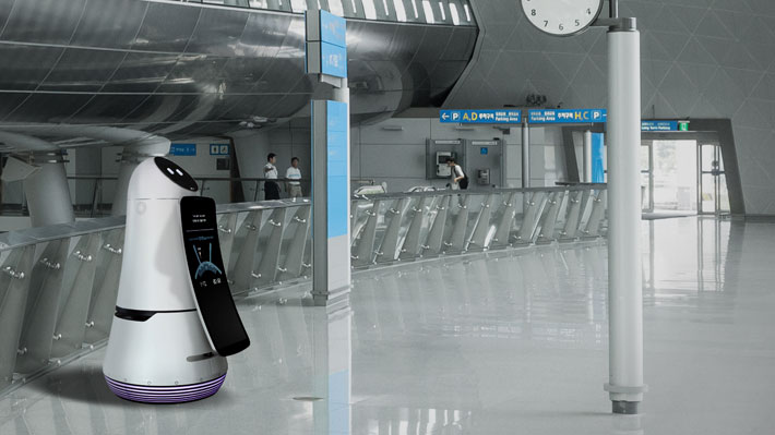 También LG presentó el Airport Guide Robot, que se usará inicialmente en el aeropuerto de Seúl, como un sistema de información inteligente para viajeros.