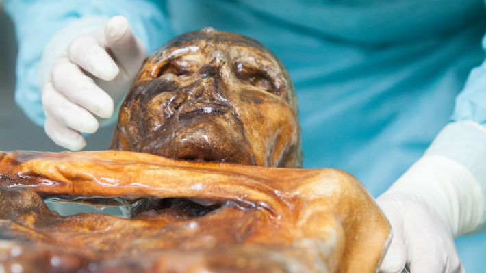 Los restos momificados de Otzi fueron descubiertos en 1991 en un glaciar italiano. Al momento de su hallazgo, vestía unas calzas de piel de cabra y sombrero; junto a él se encontraron un hacha de cobre y flechas.