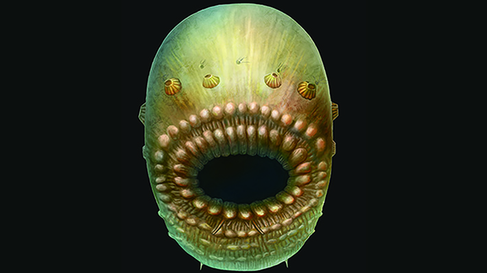 Sin embargo, la característica que más sorprendió a los científicos fue su forma "bastante primitiva” de comer y dispersar los residuos, pues posee una boca grande en relación con el resto de su cuerpo, por lo que probablemente se alimentaba engullendo partículas de alimento o incluso a otras criaturas.