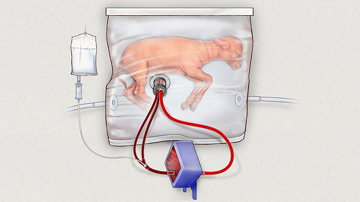 Investigadores del Hospital Infantil de Filadelfia crearon un "ambiente fluido" artificial a partir de una bolsa de polietileno que incorpora un circuito de oxígeno, un sistema con el que lograron que animales mantengan una circulación sanguínea y de gases estable.