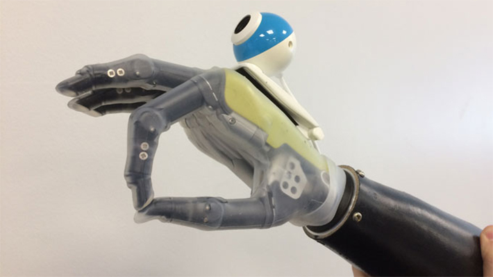 La mano biónica va equipada con una cámara que toma instantáneamente imágenes del objeto que tiene delante, evalúa su forma y su tamaño, y activa una serie de movimientos en la extremidad. De esta manera, se ahorra el proceso que requiere que el usuario vea el objeto, estimule físicamente los músculos en el brazo y genere el movimiento en el miembro prostético; esta nueva mano "puede ver" y reaccionar en un movimiento fluido.