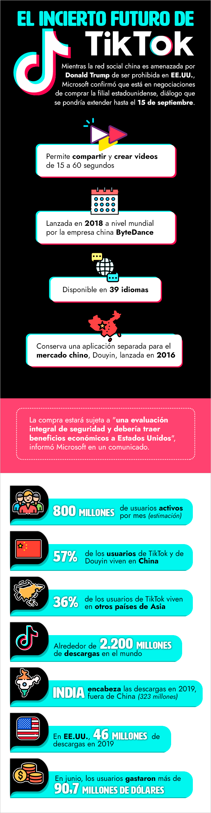 El incierto futuro de TikTok en EE.UU.: Los números de la popular red social que está bajo amenaza del gobierno de Trump