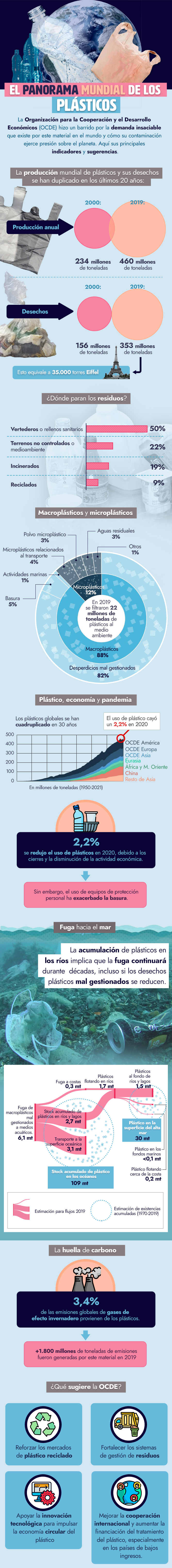 Desechos se han duplicado y sólo el 9% se recicla en el mundo: La radiografía de la OCDE a la demanda insaciable del plástico