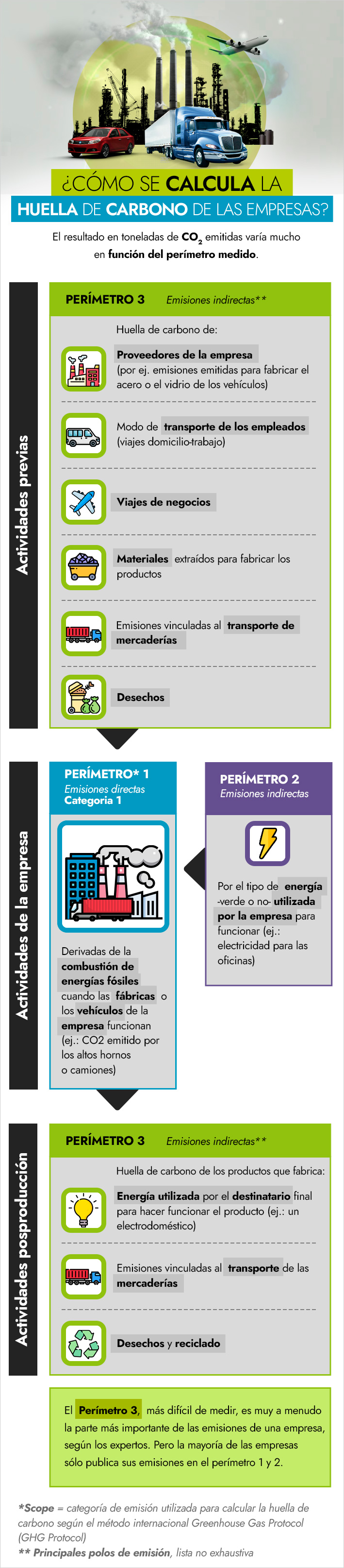 Para medir sus emisiones, las compañías utilizan un método de "scopes" o perímetros. A través de ellos, se estima el impacto desde las operaciones internas hasta que los productos o servicios llegan al consumidor. Revísalos a continuación.