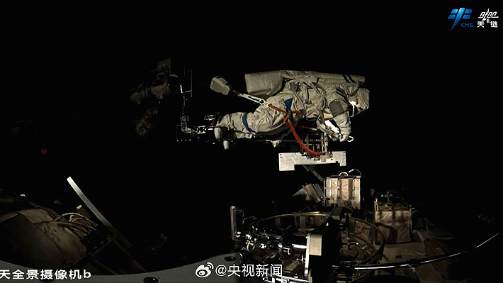 Los tripulantes Chen Dong y Wang Jie salieron al exterior del módulo central de la estación y trabajaron durante unas seis horas y media, mientras su compañero Cheng Zhongrui colaboró desde el interior.