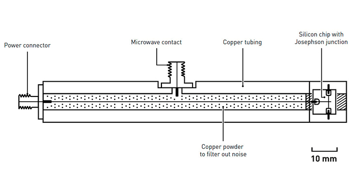 En este circuito, los componentes superconductores estaban separados por una capa delgada de material no conductor, una configuración conocida como una unión Josephson.