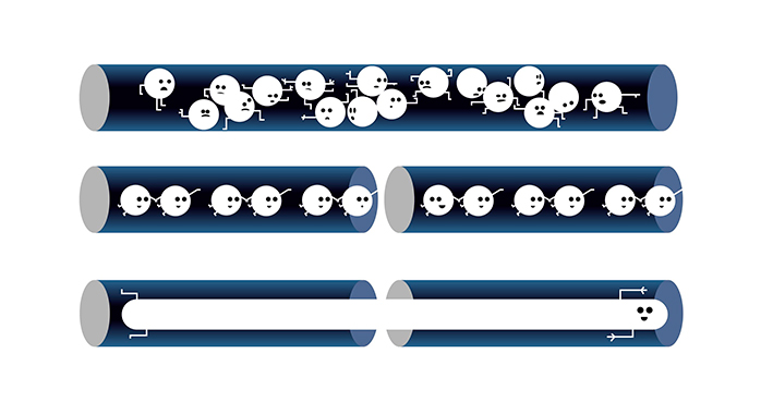 En tanto, el sistema macroscópico estaba inicialmente en un estado donde la corriente fluía sin voltaje (el estado de voltaje cero), el cual estaba atrapado en ese estado, como si estuviera detrás de una barrera que no podía cruzar.