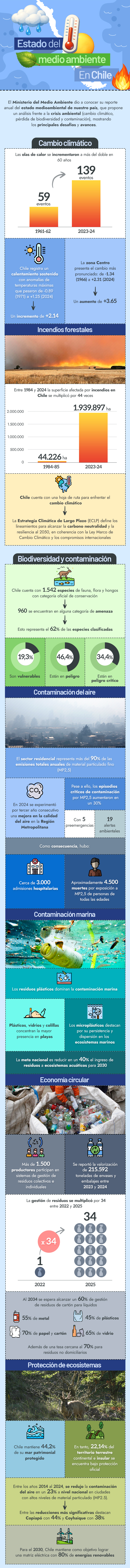 Infografía: Johanna Mellado, Emol | Contenido: Vladimir Núñez, Emol | Fuente: Reporte del Estado del Medio Ambiente 2025 del Ministerio del Medio Ambiente