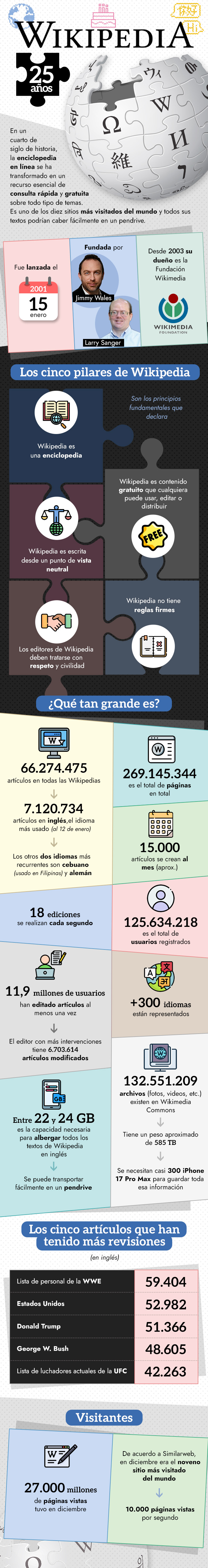 Wikipedia cumple 25 años: Las cifras de la popular enciclopedia en línea que se lee en más de 300 idiomas