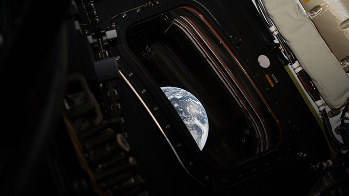 La otra fotografía muestra un tercio de la Tierra asomándose a través de la ventana de la cápsula Orión, que también muestra la fortaleza de la nave.