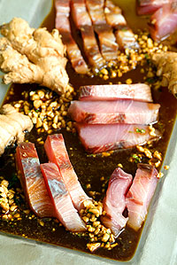 Paralelamente, en el aceite muy caliente freír el jengibre hasta lograr rigidez. Estilar y servir la cantidad precisa sobre el turbot y la salsa a su alrededor. Acompañar a gusto.