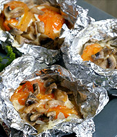 Poner al horno precalentado o a la parrilla por 20 minutos a fuego medio. Servir en el mismo alusa y acompañar con papas a elección.