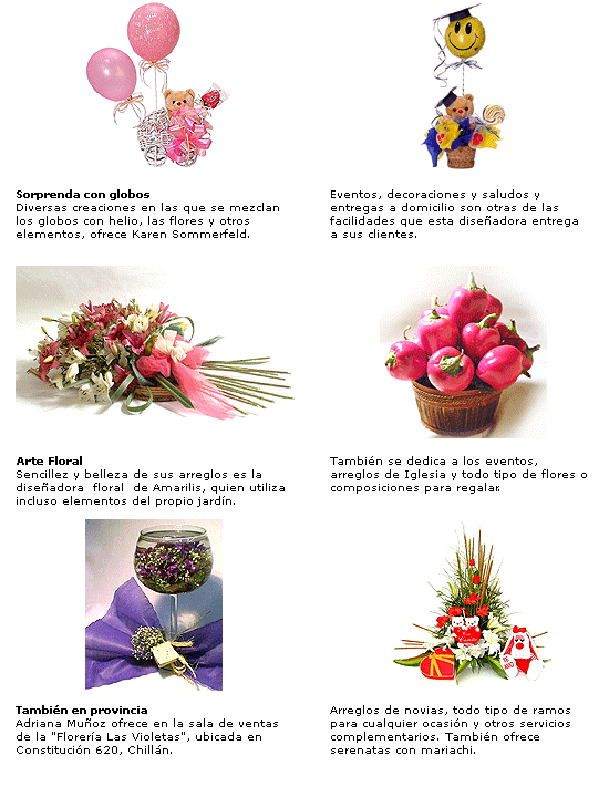 Arreglos florales en los que se usan distintos materiales son la proposición de esta vez. Novedades para matrimonios, graduaciones, nacimientos o enamorados, en Santiago y también en Chillán.