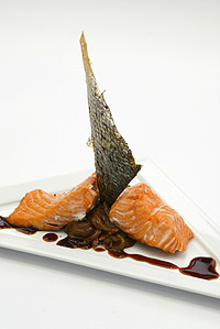 En una lata colocar los trozos de salmón, aliñar con sal y pimienta y cocer 4 minutos por un lado, dar vuelta y cocer 2 minutos más en horno precalentado a 180°C.
