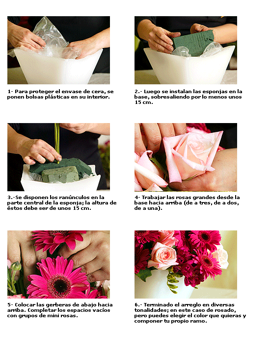 Rico en tonalidades, texturas y formas es este arreglo montado en un recipiente de cera. En él se combinan, armoniosamente, gerberas, dos tipos de rosas y ranúnculos en el tono.