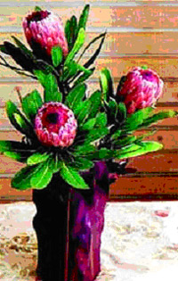 5- Introducir la esponja en el jarrón y enterrar las proteas para reforzar el color del florero y para dar altura.