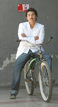 Los juegos de Avello no tienen fronteras. Frente a su actitud lúdica se puede levantar la ceja y mirarlo de reojo o dejarse llevar y reírse un rato. La segunda opción puede ser más entretenida, pero se corre el riesgo de llegar demasiado lejos. Eso sucedió en esta entrevista, que comenzó con periodista y entrevistado montados sobre la misma bicicleta. La reportera arriesgó su vida subiéndose a la enorme estructura metálica y dejando que Avello la condujera. No murió en el intento, pero tampoco salió indemne.