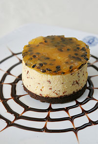Cuando la mezcla este fría verter sobre el postre que esta cuajando en el congelador refrigerar por lo menos 6 horas y servir con salsa de maracuyá. Para la salsa de maracuyá, hervir todos los ingredientes colar y enfriar.