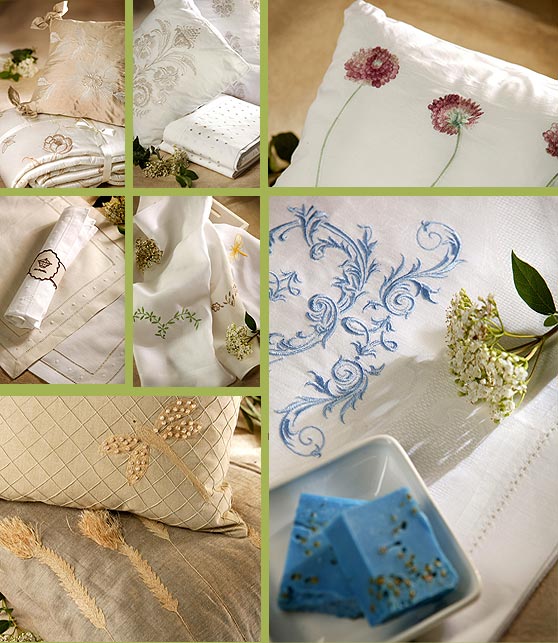 1.- Colcha y cojín de seda bordado, Laura Ashley.