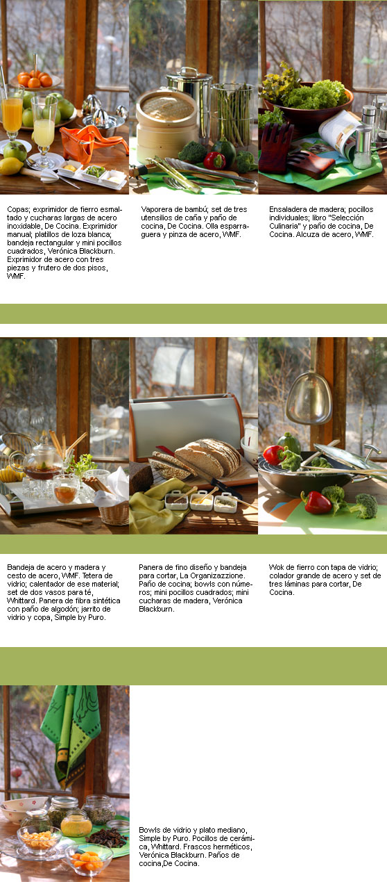Para llevar una buena dieta, además de tener a mano un menú equilibrado, se requieren ciertos utensilios especiales que ayudan -en la cocina- a la preparación de platos livianos y nutritivos, y luego a llevarlos a la mesa de manera entretenida.
