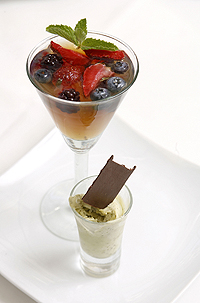 Luego, poner esta mezcla en copas y colocar las frutas por en encima.